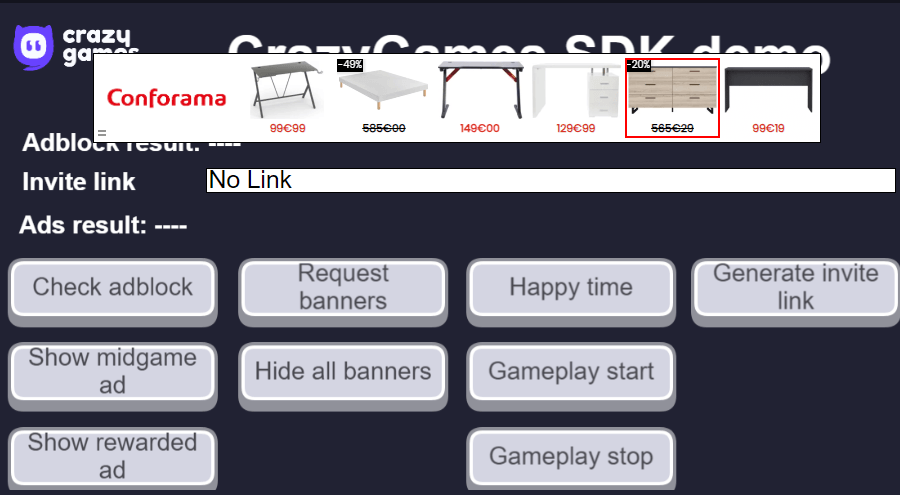 This extension allows games to be hosted on the CrazyGames website and display modules in games such as ads, banners, and various functionalities offered by CrazyGames.