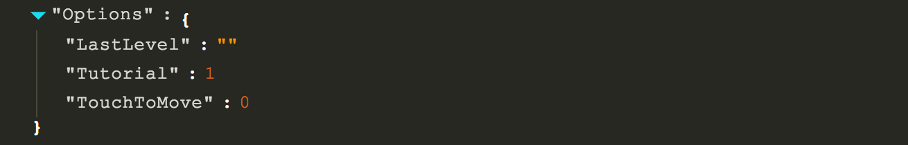 Here is an example of a variable named "Options", containing children variables to store the options of a game: